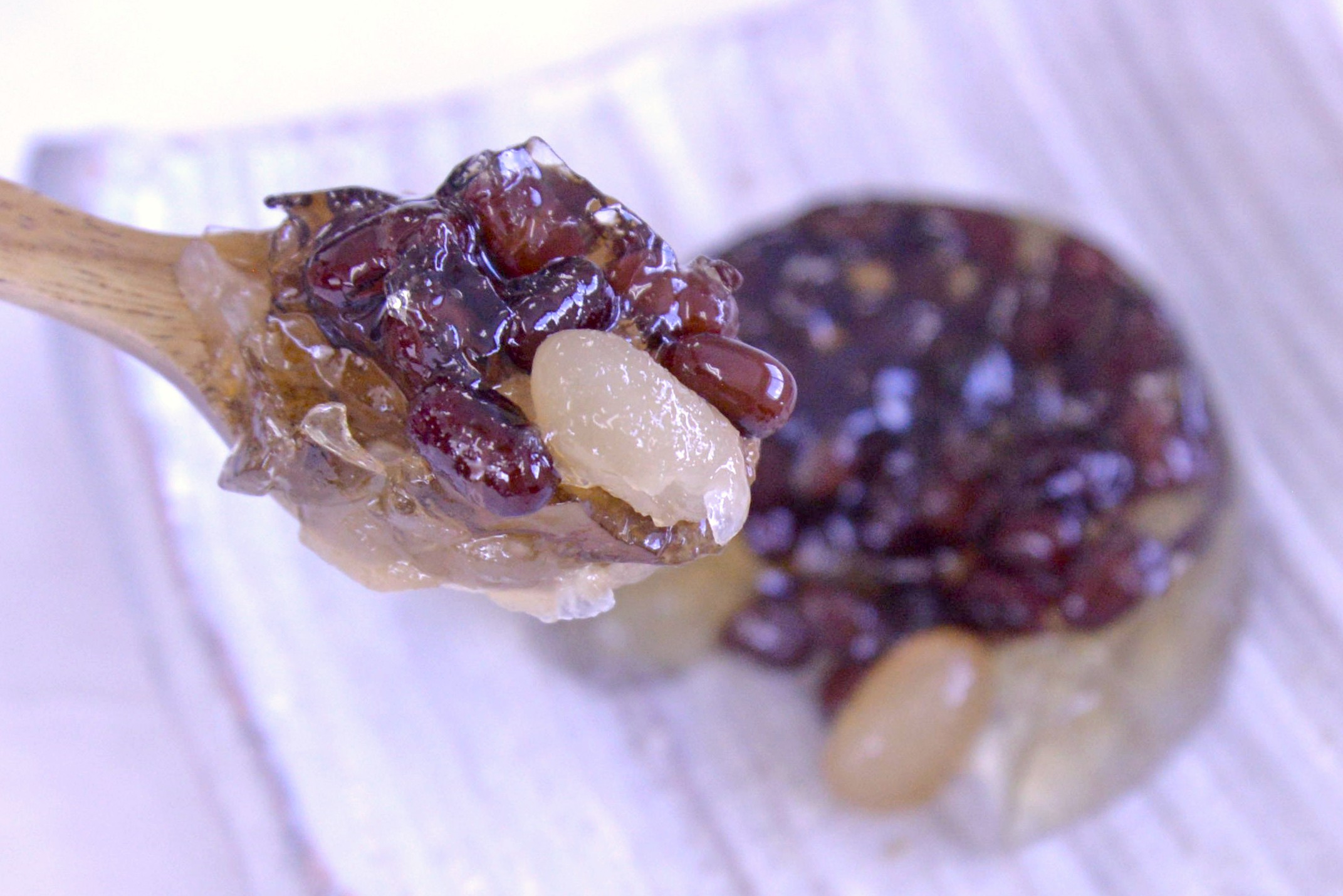 北海道産の小豆と白小豆をたっぷり使った贅沢なぜりぃです。